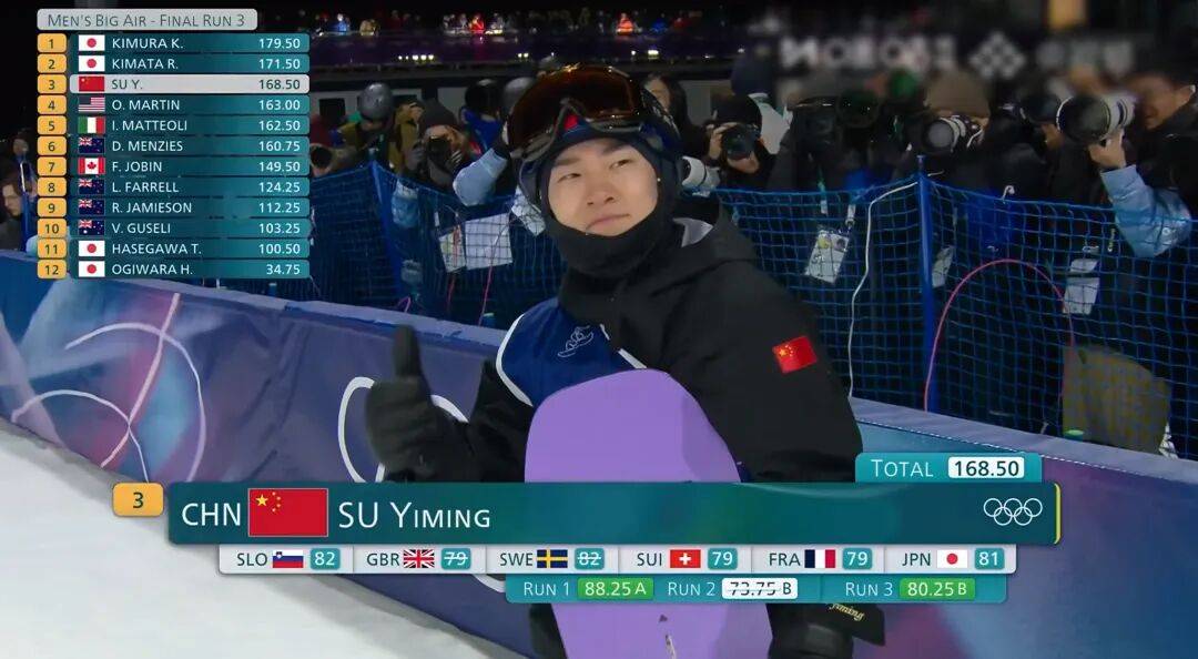 从男子单板滑雪大跳台资格赛起,1980便填满雪道。尽管苏翊鸣在决赛后两轮仍交出1980的答卷,手轻微触雪的小失误,把他挤到了第三名。